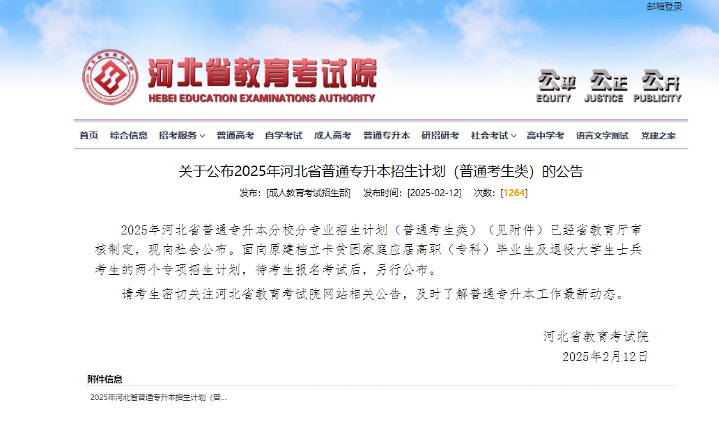 關于公布2025年河北省普通專升本招2025年河北省普通專升本分校分專業招生計劃(普通考生類)(...詳情